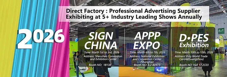 डी·पीईएस प्रदर्शनी दक्षिणी चीन में आउटडोर विज्ञापन उपकरणों के लिए शीर्ष विशिष्ट कार्यक्रम है, जिसमें सालाना 600+ प्रदर्शक और 35,000+ आगंतुक आते हैं। यह सब व्यावहारिक, उपयोग के लिए तैयार उत्पादों के बारे में है - समुद्र तट ध्वज आधार, वापस लेने योग्य बैनर और पोर्टेबल डिस्प्ले सेटअप जैसी चीजें। यहां भीड़ ज्यादातर आउटडोर विज्ञापन ठेकेदारों, इवेंट प्लानरों और खुदरा ब्रांड प्रबंधकों की है, जिन्हें ऐसे गियर की आवश्यकता होती है जो जल्दी से स्थापित हो और हवा, धूप और बारिश से बच सके। डी·पीईएस में, अर्थ डिस्प्ले अपने 360 रोटेट क्रॉस बेस और हवा-प्रतिरोधी पंख वाले झंडे का लाइव डेमो चलाएगा, जो आउटडोर प्रोमो अभियानों के साथ आने वाली सामान्य सिरदर्द को ठीक करेगा।